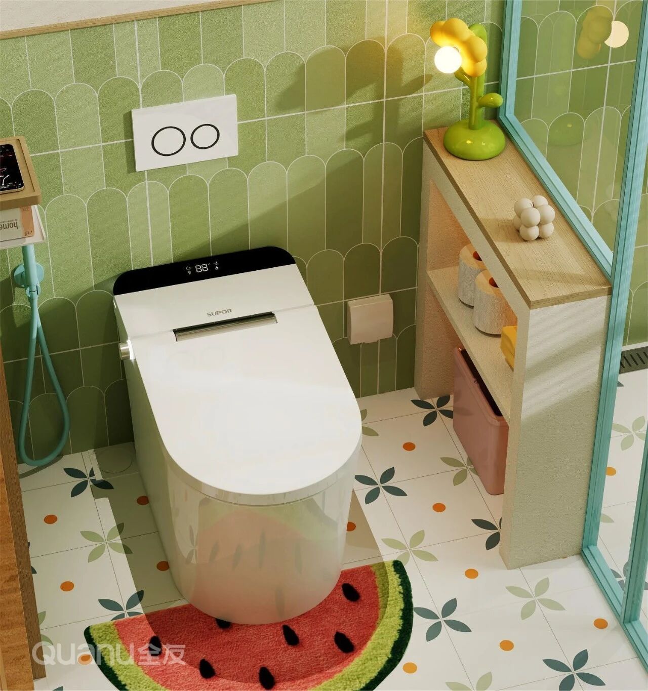 在(zai)馬桶上方(fang)安(an)裝(zhuang)壁挂薄櫃,深度約20cm,分(fēn)層收納紙巾咊(he)洗護用(yong)品(pin),輕松利用(yong)垂直空間的(de)同時,又(yòu)能(néng)保持地面整潔。